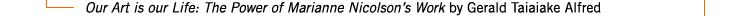 Our art is our life, and to me the power of Marianne Nicolson’s