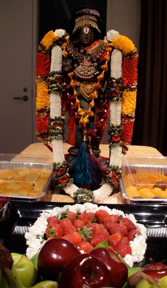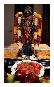 or camphor and offering food, flowers, and fruit to the God, all