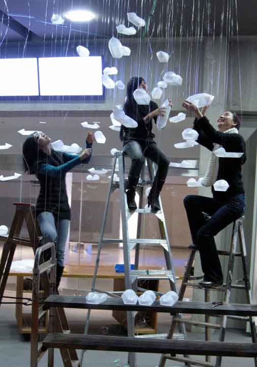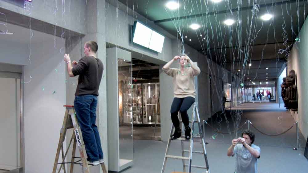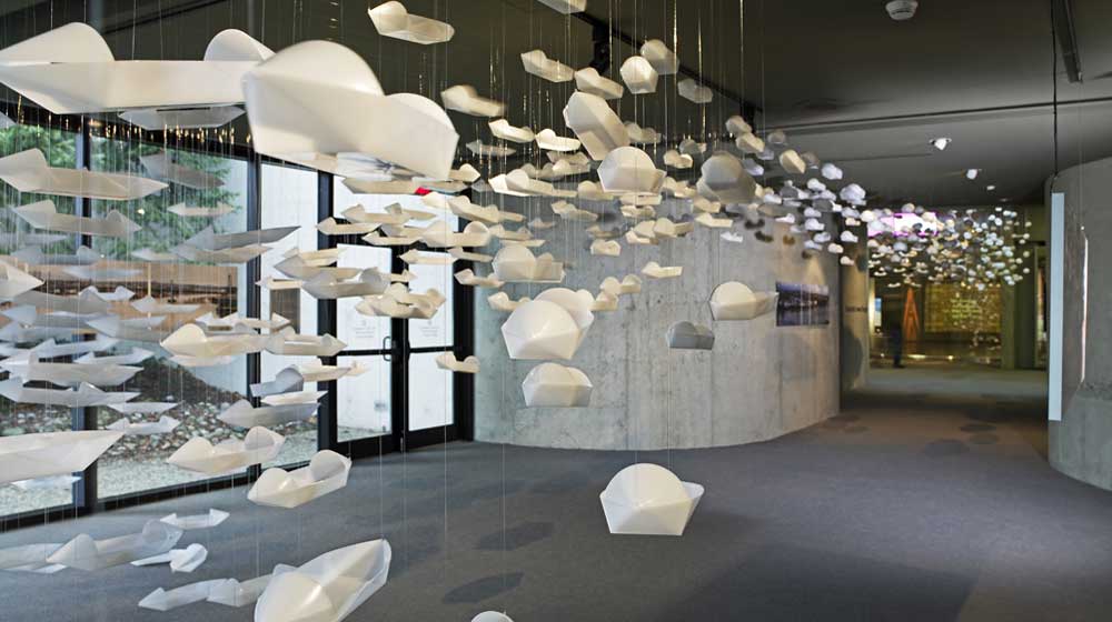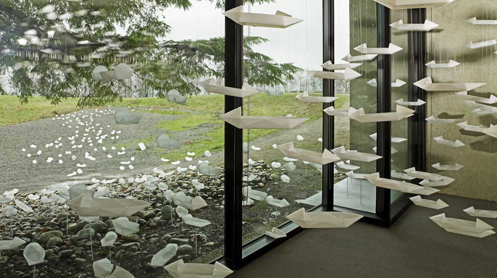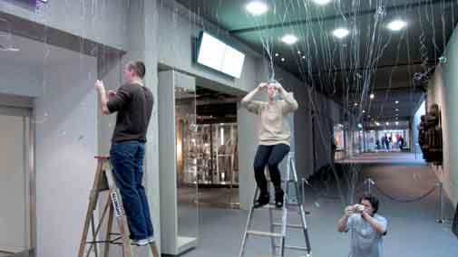 Gu Xiong and his team install the boats outside and inside the museum.