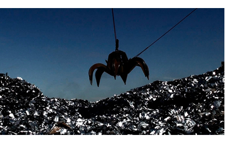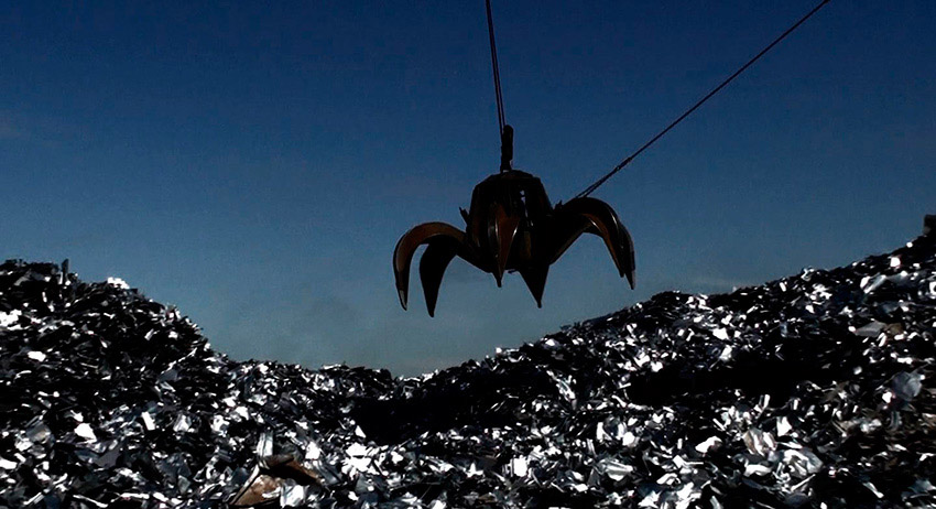 crane jaws heaving metal in Tania Mouraud’s Face to Face