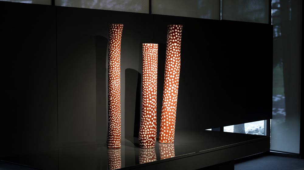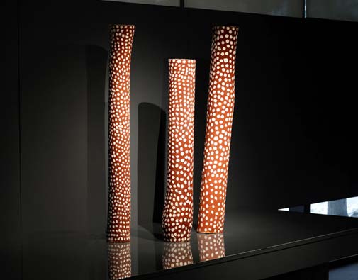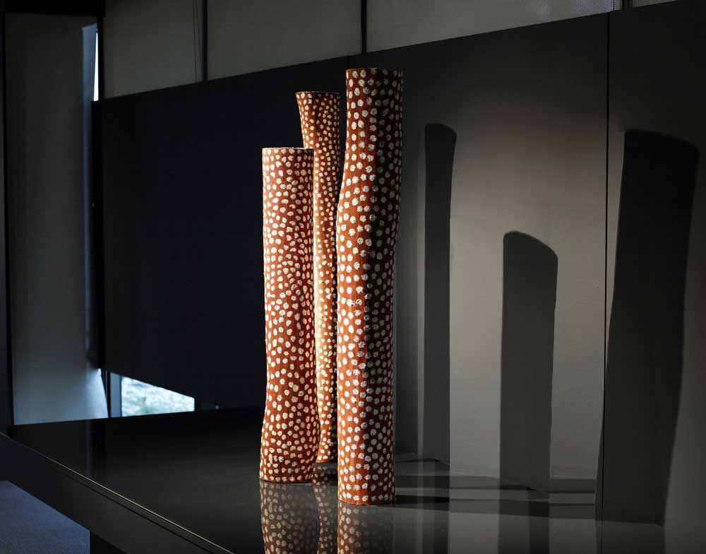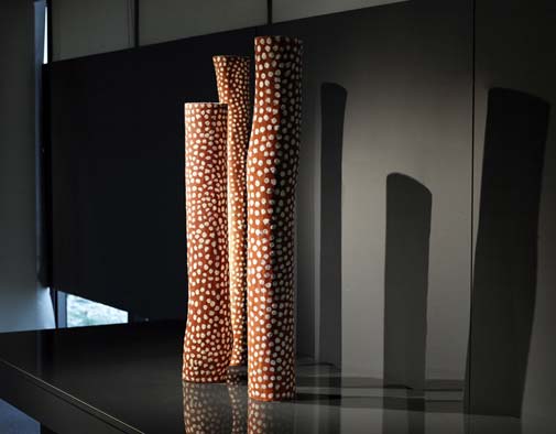 Thuuth Thaa’-munth (Law Poles) by Ron Yunkaporta, 2009 Cottonwood, red ochre, pipe clay Collection of Peter Sutton